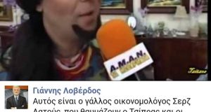 Ο Γιάννης Λοβέρδος μπέρδεψε τον Σερζ Λατούς με τον Σωτήρη Καλυβάτση Αυτή τη φορά ο υποψήφιος βουλευτής της Ν.Δ υπέπεσε σε ένα μεγάλο λάθος, θέλοντας να «κατηγορήσει» τους πολιτικούς του αντιπάλους και να ασκήσει αντιπολίτευση… προεκλογική περίοδος γαρ. Γράφει χαρακτηριστικά σε post στο προφίλ του στο facebook: «Αυτός είναι ο Γάλλος οικονομολόγος Σερζ Λατούς, που […]