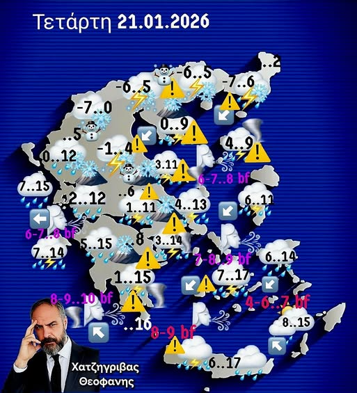 Καιρός 21-1: Πού θα χιονίσει; Ανάλυση Χατζηγρίβα και για τις ισχυρές καταιγίδες