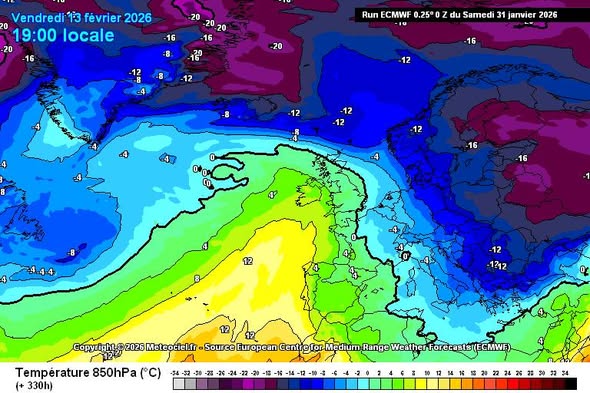 Πρώτη αναφορά για όσα αρχίζει να δείχνει το ευρωπαϊκό μοντέλο, για την τάση καθόδου ψυχρών αερίων μαζών προς τη χώρα μας, κοντά στου Αγίου Βαλεντίνου.