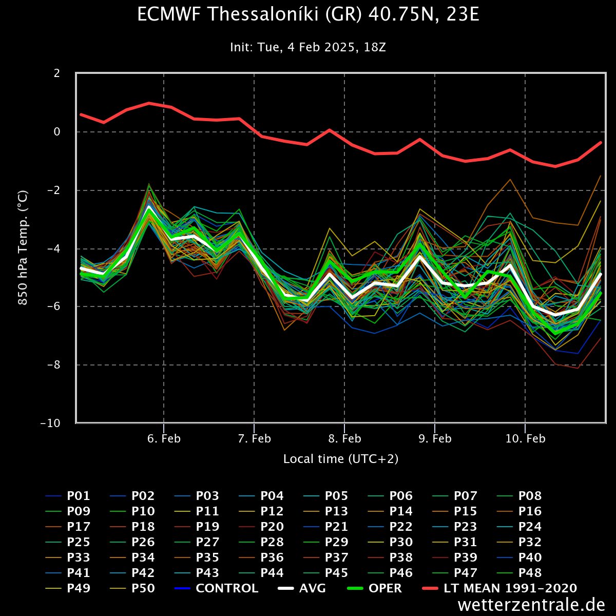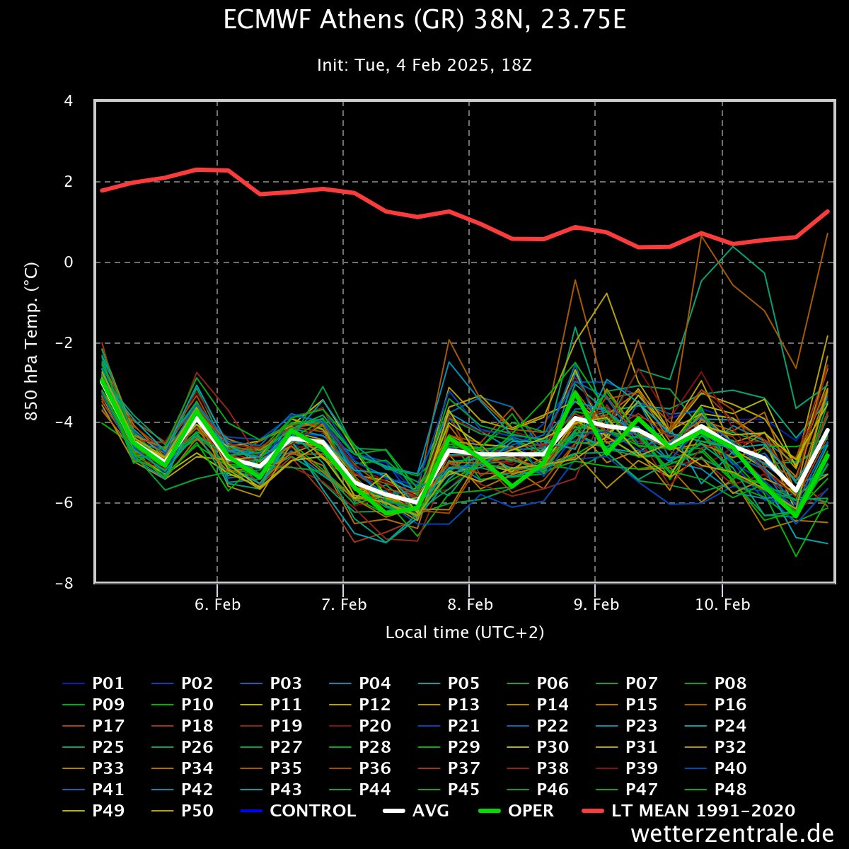 Ενδεικτικά στα παρακάτω γραφήματα βλέπετε πως θα μεταβληθεί η θερμοκρασία σε Αθήνα και Θεσσαλονίκη τουλάχιστον μέχρι τις 11/2/25.