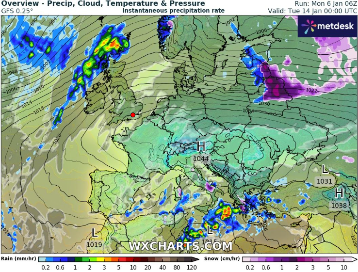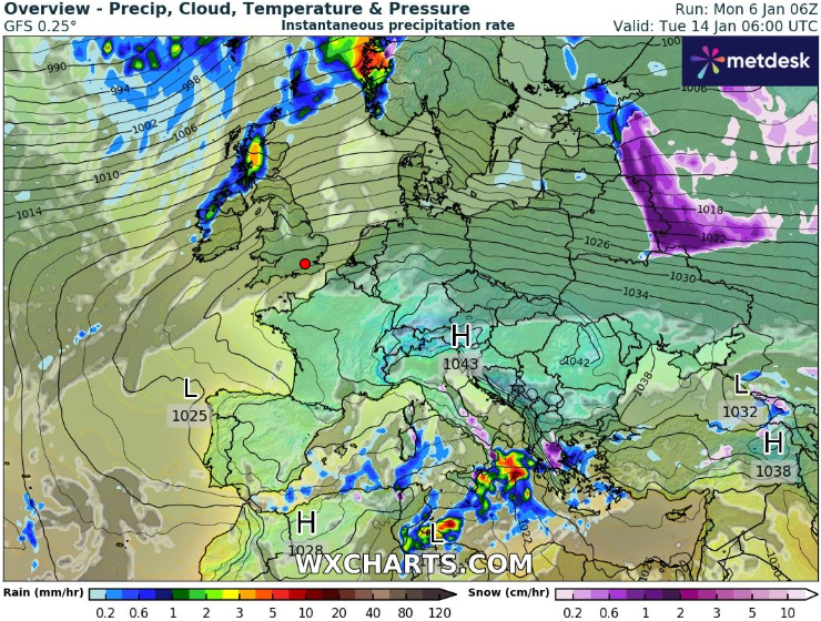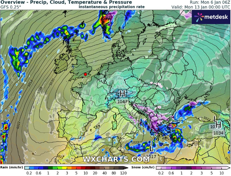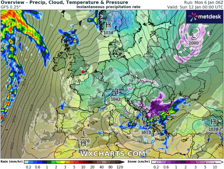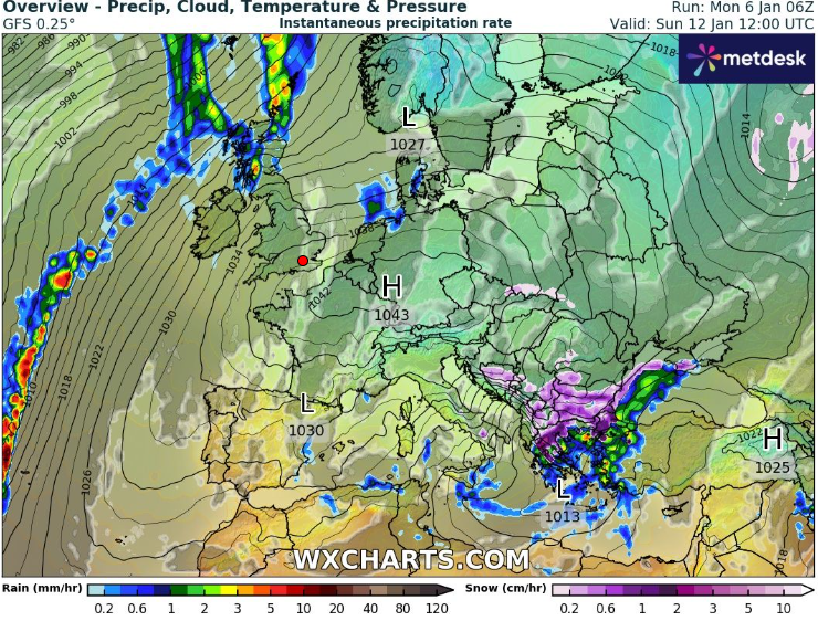 Καιρός: Πολλές και πυκνές χιονοπτώσεις σε πολλές περιοχές της κεντρικής και βόρειας Ελλάδας, ακόμα και με χαμηλά υψόμετρα, τάζει το GFS και στο μεσημεριανό τρέξιμο της Δευτέρας 6 Ιανουαρίου.