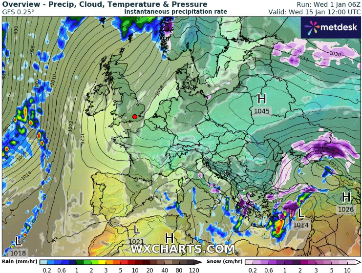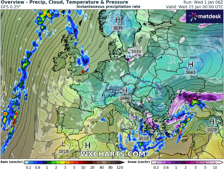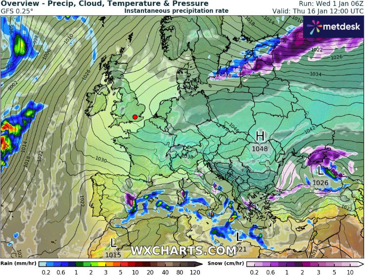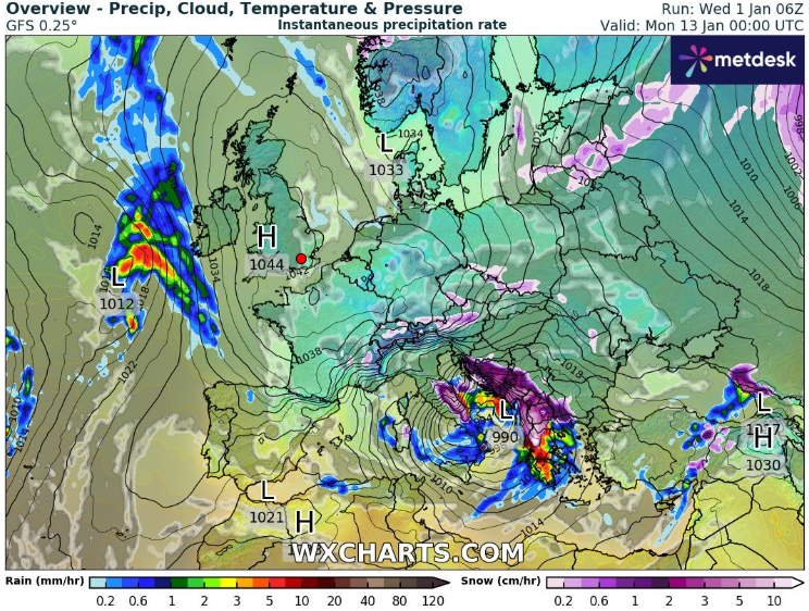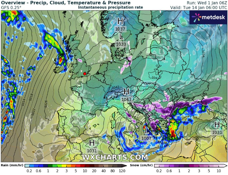 Καιρός: Ενα σενάριο άκρως ψυχρό και υετοφόρο, ικανό να προκαλέσει πολλές χιονοπτώσεις και σε πεδινές περιοχές σε κεντρική και βόρεια Ελλάδας, προέκυψε από το μεσημεριανό τρέξιμο του GFS, της Πρωτοχρονιάς.