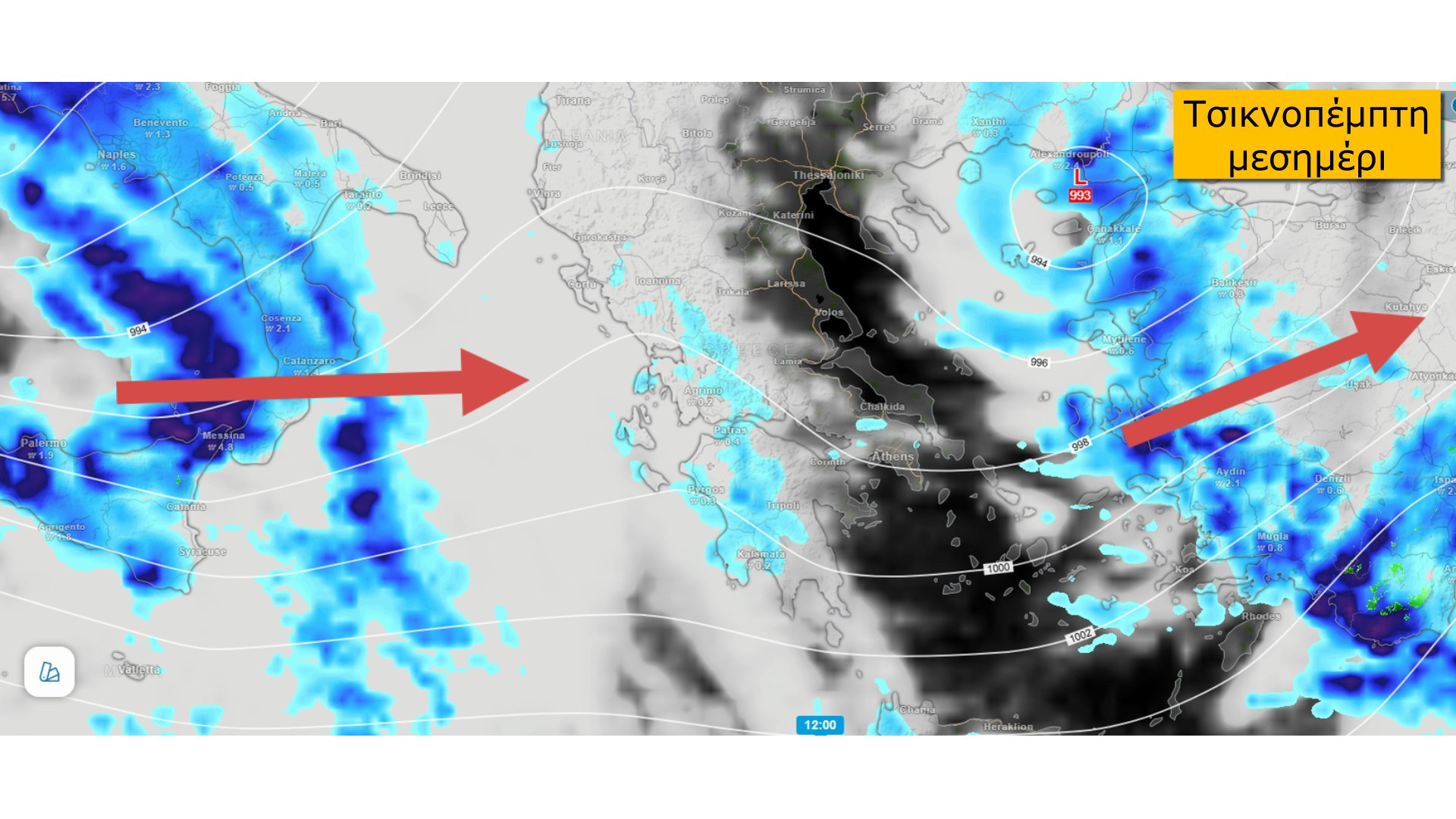 Μπορεί να είναι άστατος ο καιρός την Τσικνοπέμπτη σε μεγάλο μέρος της χώρας, όμως θα υπάρχει ένα διάστημα σχετικής βελτίωσης μεταξύ του ενός συστήματος που απομακρύνεται από το Ανατολικό Αιγαίο και του άλλου που έρχεται προς το βράδυ από τα Δυτικά. Έτσι όπως έρχεται το ένα σύστημα πίσω από το άλλο πρέπει να είμαστε προσεκτικοί.