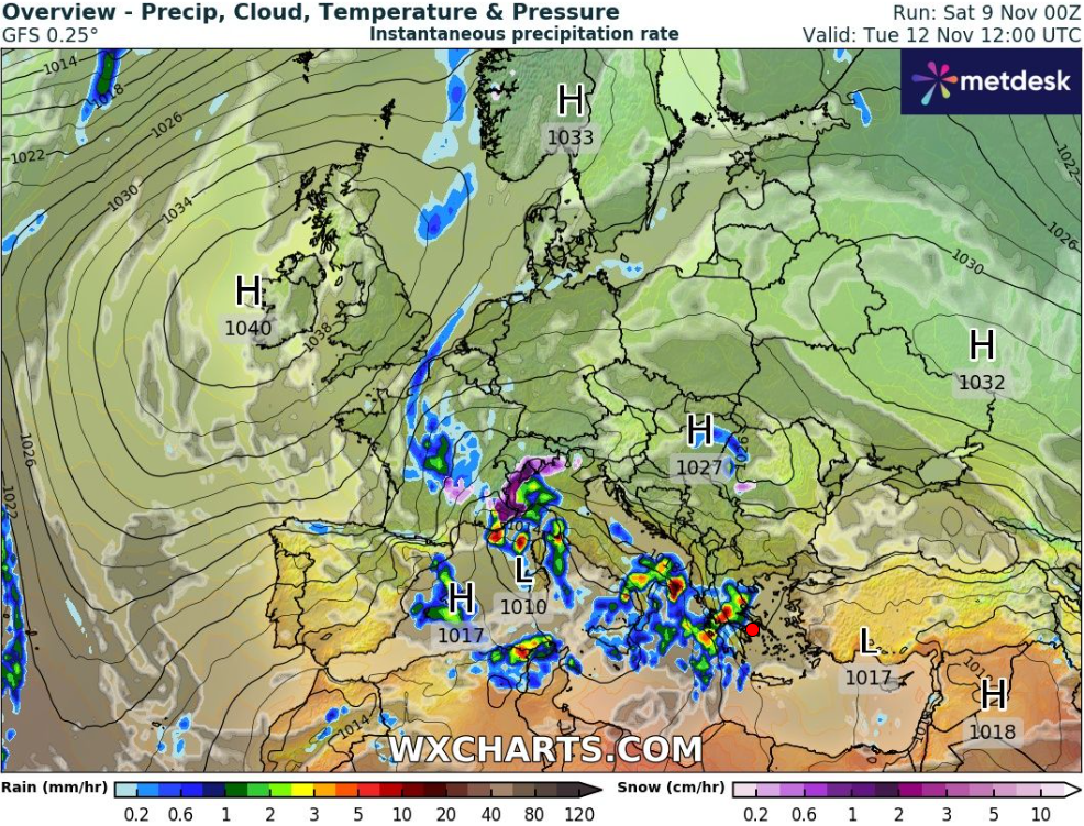Δείτε τις εικόνες από το πρωινό τρέξιμο του GFS για Τρίτη και Τετάρτη.