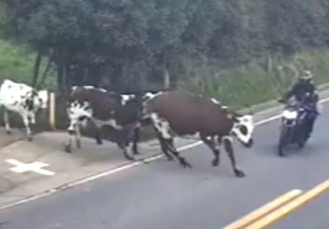 Κολομβία: Σοκαριστικό ατύχημα αγελάδας με μοτοσικλετιστή (vid)