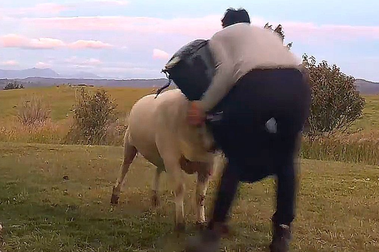 Ο τολμηρός άνδρας εξήγησε ότι με αυτόν τον τρόπο εμπλουτίζει τις ασκήσεις του κριαριού του που ίσως το προπονεί για… πάλη.