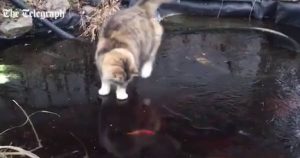 Τρελαίνει το διαδίκτυο η γάτα που επιχειρεί να πιάσει τα χρυσόψαρα, τα οποία κολυμπούν ανέμελα από… κάτω της, καθώς λόγω πολικών θερμοκρασιών η επιφάνεια της λιμνούλας έχει παγώσει. Δείτε το βίντεο που έγινε viral σε λίγα μόλις λεπτά…